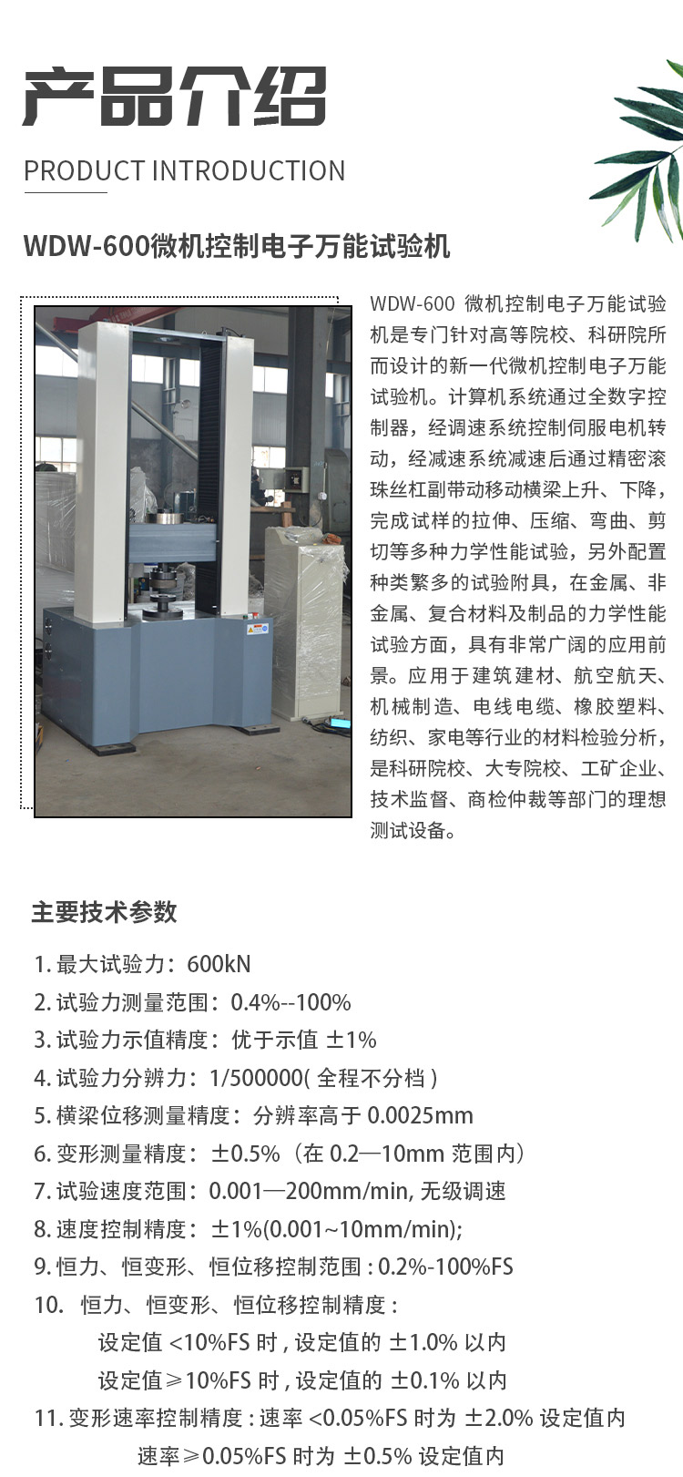 WDW-20G高低溫微機電子萬能試驗機技術指標