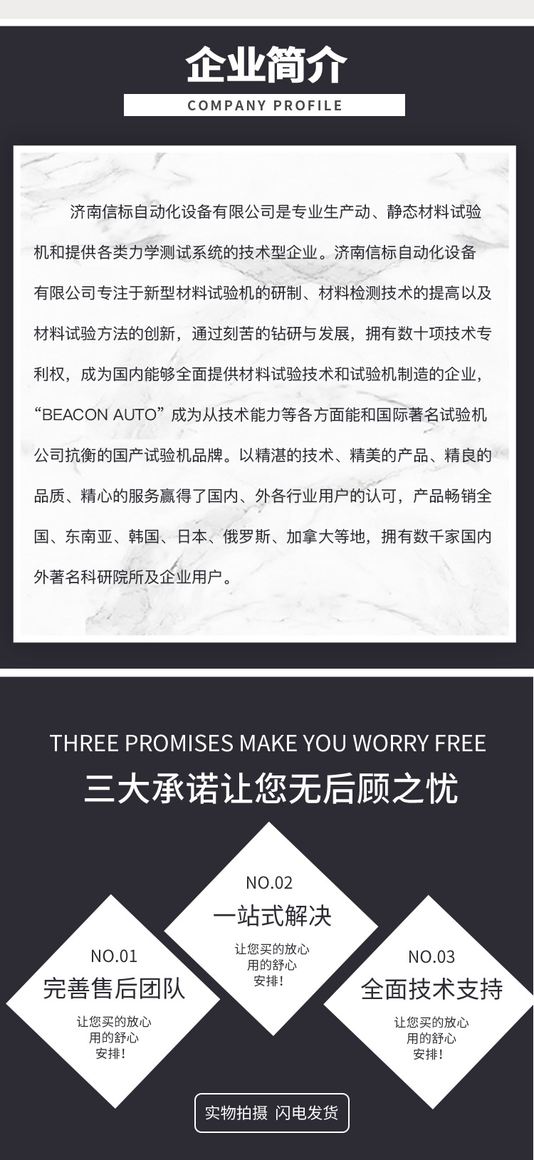 濟南信標(biāo)自動化設(shè)備有限公司主要生產(chǎn):動靜態(tài)萬能疲勞試驗機,接骨板彎曲試驗機,縫合線拉伸疲勞試驗機,髖膝關(guān)節(jié)磨損試驗機,電子萬能試驗機、液壓萬能試驗機、巖石三軸、四軸,電液拉力試驗機,材料試驗機,高低溫蠕變,高低頻疲勞,拉伸、扭轉(zhuǎn)、杯突等二十多個系列兩千多個的品種。
