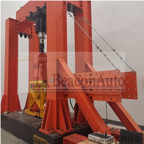 1.正弦激振力、隨機激振力的上限5.5kN, 沖擊激振力上限10kN; 2.頻率范圍必須涵蓋5~3200Hz; 3.上限位移45mm; 4.上限速度2 m/s, 上限加速度800 m/s2; 5.具備系統(tǒng)保護功能,必須涵蓋:臺體:過熱保護、過載保護、過位移保護等; 電網(wǎng):過壓保護、欠壓保護、缺相保護等; 模塊:邏輯保護、短路保護等; 電源:驅(qū)動保護、溫度保護等; 勵磁:開路保護、短路保護、溫度保護等; 安全:聲光報警 、應 急停機等。 6.留有跟溫濕試驗箱的組裝接口,能夠?qū)崿F(xiàn)振動-濕度-溫度同步耦合的三綜合試驗; 四、裝配式鋼結(jié)構(gòu)大噸位反力架加載系統(tǒng) 1.設備工作條件。 1.1 工作溫度:0℃-50℃; 1.2 工作濕度:0-85%; 1.3儀器運行的持久性:儀器可長期連續(xù)使用,用于時間周期為一周的高低周疲勞試驗。 2.設備用途 10000KN 長柱壓力試驗系統(tǒng)由8件立柱、4件上梁、4件底梁,2件縱梁等組成,主要用于對結(jié)構(gòu)梁或平面桁架結(jié)構(gòu)進行靜載試驗。通過合理結(jié)構(gòu)設計,使在進行其他試驗時,反力架能與試件形成自平衡,通過施加集中力荷載可得各構(gòu)件的承載力大小,以及可計算出構(gòu)件各截面的內(nèi)力值。該反力架借助實驗室反力地槽,放置在實驗室內(nèi)靠近反力墻的位置,進行混凝土梁的三點彎曲試驗、四點彎曲試驗、混凝土柱的抗壓試驗及其他結(jié)構(gòu)件的力學試驗。3.10000KN 長柱壓力試驗系統(tǒng)技術參數(shù) 3.1 主要技術參數(shù)及性能指標。 3.1.1、上限垂向負荷: ≥10000kN; 3.1.2、上限垂向位移: ≥200mm; 3.1.3、上限負荷時變形: ?L≤L/1000; 3.1.4垂向測力范圍:2%-100%(40kN-2000kN) 3.1.5垂向示值精度:≤±1%; 3.1.6水平方向上限實驗空間: ≥4000mm(含作動器與傳感器的尺寸) 3.1.7系統(tǒng)有效試驗空間: ≥6000mm×4000mm×3000mm(長×寬×高)) 3.1.8整機噪聲:≤70dB 3.1.9測力方式:采用高精度負荷傳感器測力。 3.1.10控制方式:伺服液壓加載,力值顯示儀直接顯示試驗結(jié)果。 3.1.11整機外形尺寸(約) : 6000mm×4350mm×6000mm(長×寬×高)。 3.1.12整機重量約:55T。 標簽:10000KN 長柱壓力試驗系統(tǒng)